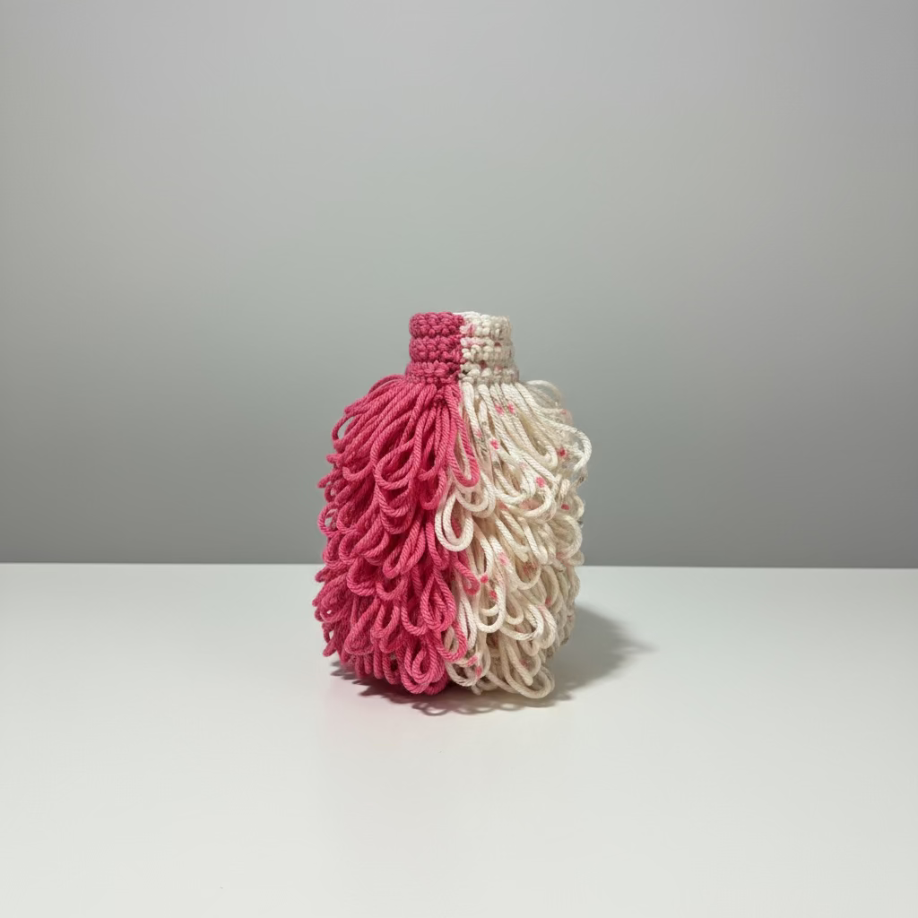 Our pink/grey polka dat & hot pink handmade clutch bag is made of an acrylic, cotton, polyester, blend and/or other fibered yarn.